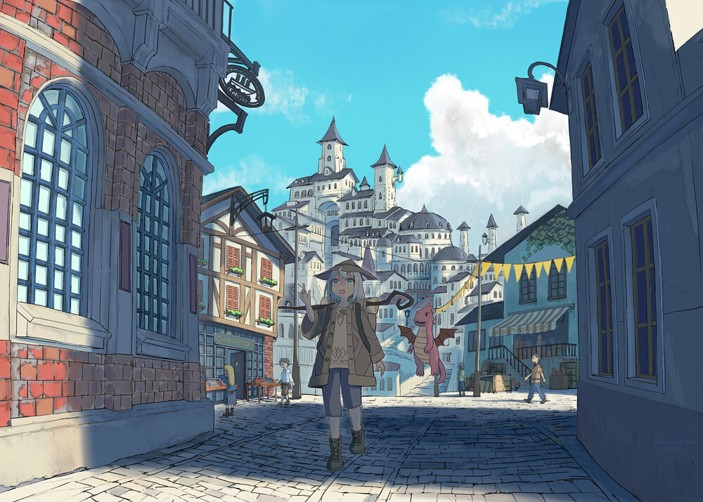 19 Mio12 Миры Фэнтези Город 3 месяца назад うーぱーぴん Арт Иллюстрации Фэнтези Путешественники Приключенцы Фамильяр Дракон Город Аниме Anime Art Original Character 1 Ещё 0