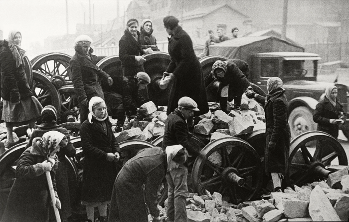 Заняты женщины были и на оборонительных работах, копали противотанковые рвы. Им тоже приходилось переходить на казарменное положение, потому что путь был долгим, голод и бессилие не позволяли ходить домой каждый день, а дети оставались в городе одни.