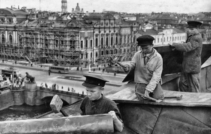 По данным Петростата за тот же год, медсестрами служили 32 тыс. женщин. На оборонительных сооружениях работали 600 тыс. детей и подростков. Лопатами и кирками они выкопали 700 км противотанковых рвов. Они же соорудили 300 км лесных завалов и 5 тыс. блиндажей.