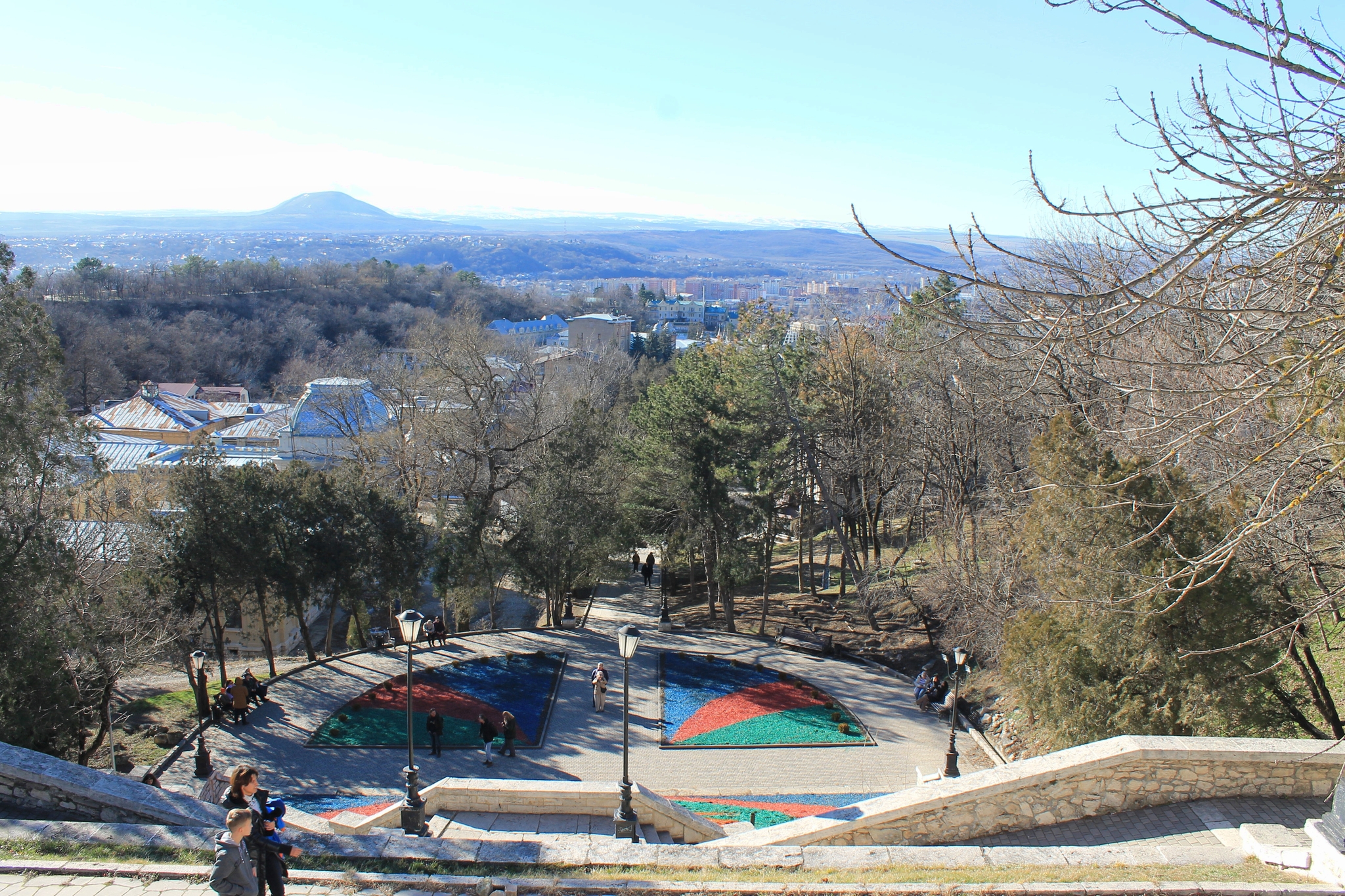 Далее наш путь пролёг вниз по бульвару Гагарина к гроту Лермонтова и парку Елизаветинский цветник. Пятигорск интересен тем, что при прогулке у тебя постоянная смена высот. Для жителя равнины это, конечно, непривычно, но очень интересно.