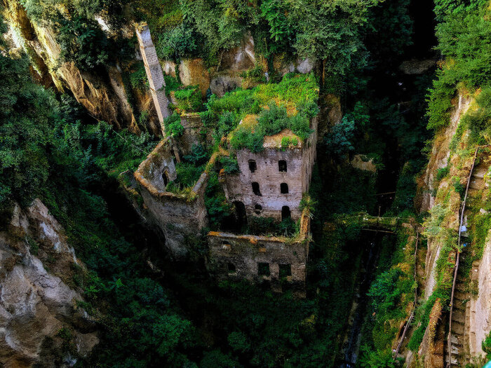 Валле-деи-Мулини представляет собой невероятную коллекцию руин в Сорренто. Эта долина образовалась в результате мощного извержения в этом районе. Люди заложили здесь фундамент, так как здесь был постоянный поток воды, идеально подходящий для выращивания пшеницы. После этого здесь были построены мельницы и прачечная, которые использовались до 1940 годов из-за естественной влажности долины. Теперь природа взяла верх в этом районе. Долина вечнозеленая из-за 80% влажности.