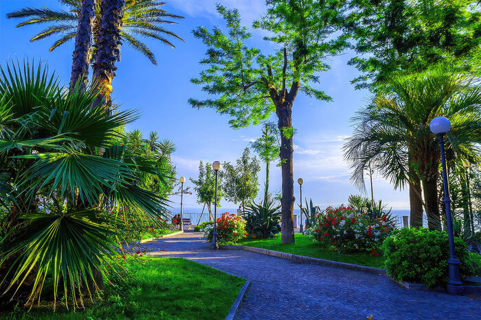 В Сорренто открываются изысканные виды на побережье. Нет лучшего места, чтобы насладиться ими, чем вилла Комунале. Это очень популярный, хотя и небольшой сад в Сорренто. Прогуливаясь, можно зайти в сад и полюбоваться невероятным видом на Неаполитанский залив и гору Везувий на заднем плане. Можно посетить парк после осмотра достопримечательностей, чтобы полюбоваться закатом перед ужином. Также из этого парка можно спуститься на лифте в Марина-Пиккола, где есть различные частные пляжные клубы.