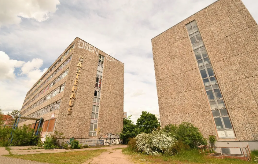 Жилой комплекс №4 закончили строить в 1964-м. Дальше архитектура стала попроще. Не случайно, что ЖК №7, построенный во второй половине 1980-х на окраине города, был почти полностью снесен к 2009 году. Причина сноса: слишком много покинутых, заброшенных квартир. Именно отсюда наиболее активно уезжали люди после объединения Германии. Выглядело там все примерно так: