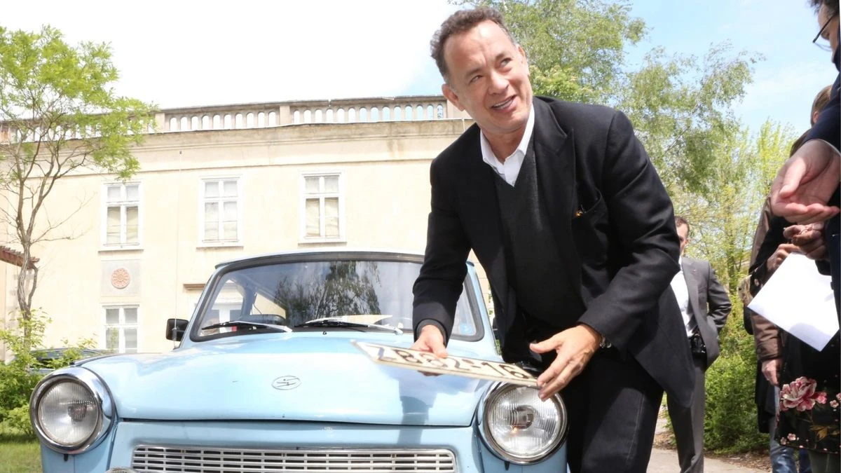 Ну и как я уже не раз написал - все здесь сломалось вместе с падением Берлинской стены. Люди стали уезжать, квартиры пустеть, дворы зарастать. Завод приватизировали, число рабочих сократилось с 11 до 2 тысяч человек. Вот и приходится властям придумывать способы привлечь молодых, талантливых и полезных для общества людей в свой Айзенхюттенштадт. До этой истории с бесплатными двухнедельными каникулами из начала поста главным инфоповодом был приезд актера Тома Хэнкса. Он был в восторге от города и даже машину себе прикупил тут: