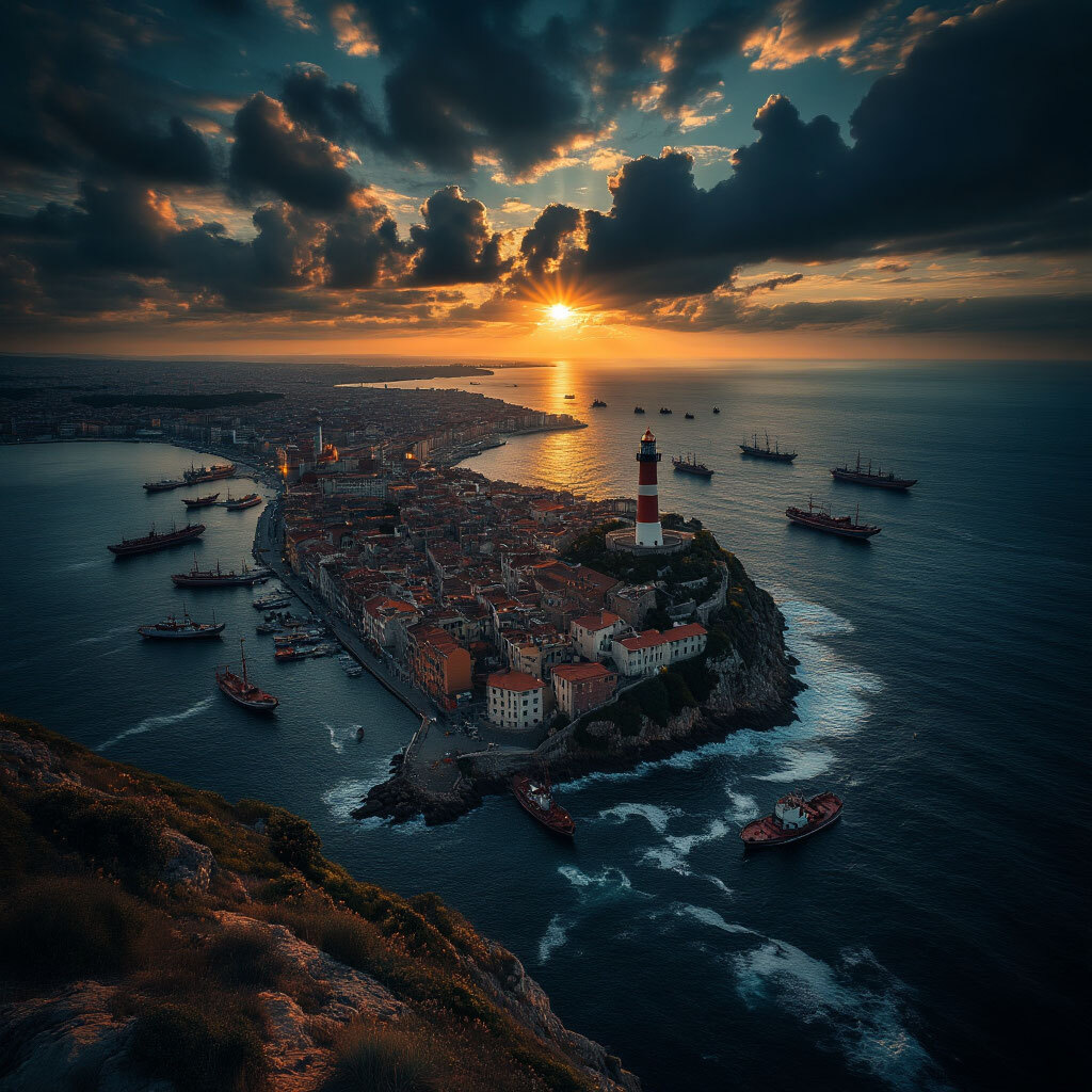 6. Сайфил. Официально этот город расположен на территории долины Ноди, но на самой ее западной оконечности, на полуострове, который выступает далеко на запад и вклинивается в море Кара. Будет справедливо сказать, что это самый западный город Целисера. А также это один из крупнейших торговых городов торбов. Он является перевалочным пунктом для товаров с юга, севера и архипелага Дифеа. Многие называют его воротами в Пустоши Борра и не просто так. Именно Сайфил породил торговый дом «Нефрит», который является одним из 2 самых больших конгломератов торбов. Пусть и не официально, но город подвластен именно ему, а защиту обеспечивает Западная армия Целисера. Особенно примечателен маяк Сайфила, который виден за многие километры.