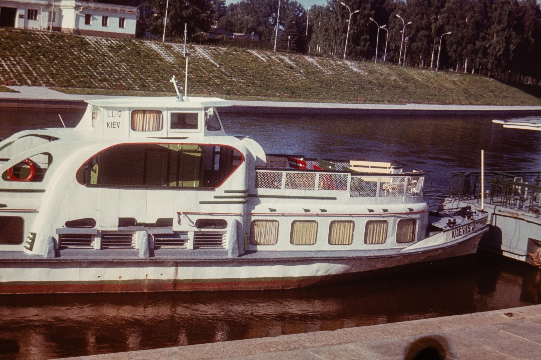 9. Теплоход Киев на реке Нерис у причала. 1988 год.