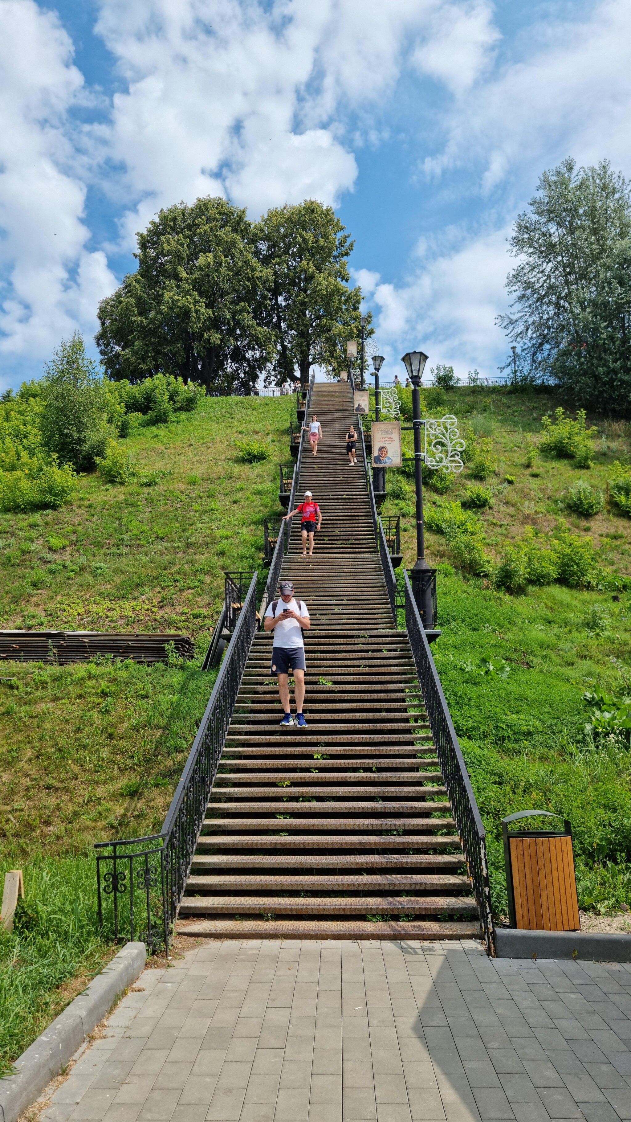 Преодолев сложный подъём, я оказался на смотровой площадке, заполненной туристами, откуда вновь открылся замечательный вид на противоположный берег и Волгу.