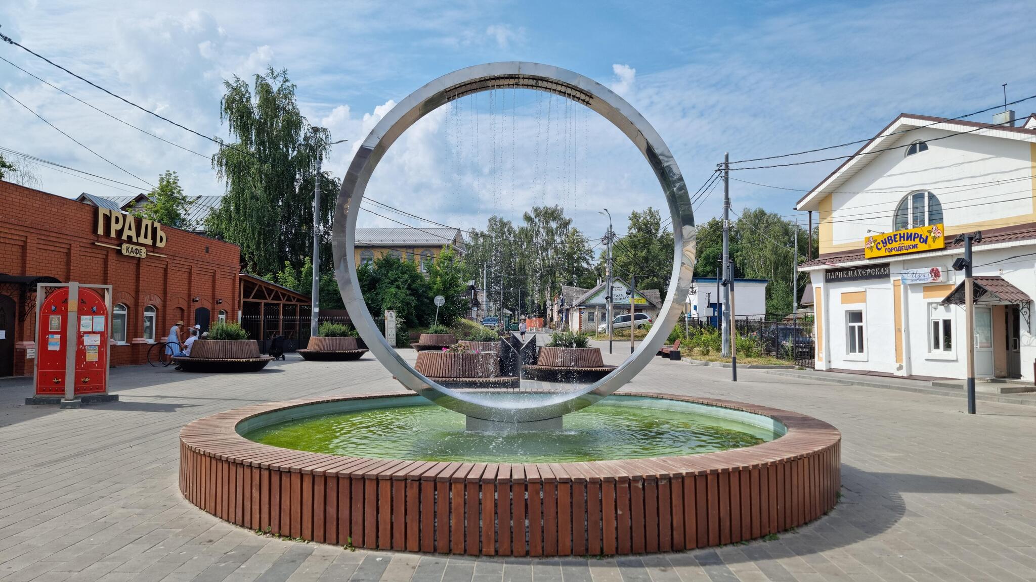 Пройдя насквозь очередную улицу, застроенную старинными зданиями, я оказался на главной площади. В самом её центре стоял современный фонтан, сделанный в виде кольца. Он настолько контрастировал с окружающими домами, что, казалось, в пространстве и времени возникла брешь, объединившая две несовместимые эпохи.