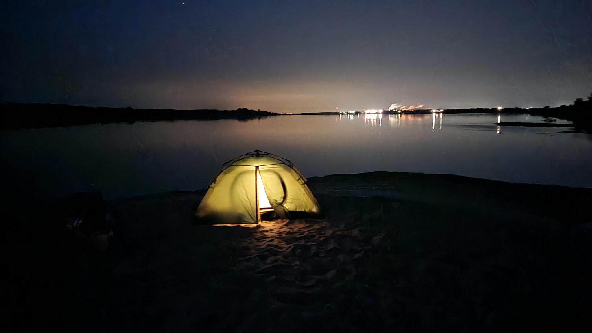 Когда я закончил, день давно уступил место ночи. Вокруг царил мрак, но вдали разгоралось зарево — это Балахна приветствовала меня своими огнями, отражающимися в воде. А моя палатка, освещенная изнутри, стала похожа на маленький, уютный маяк.