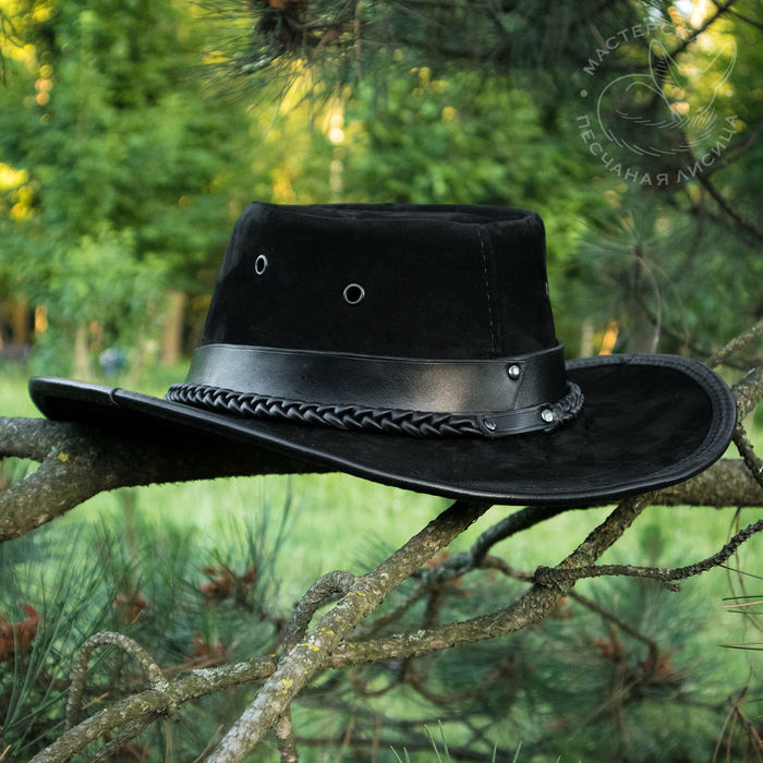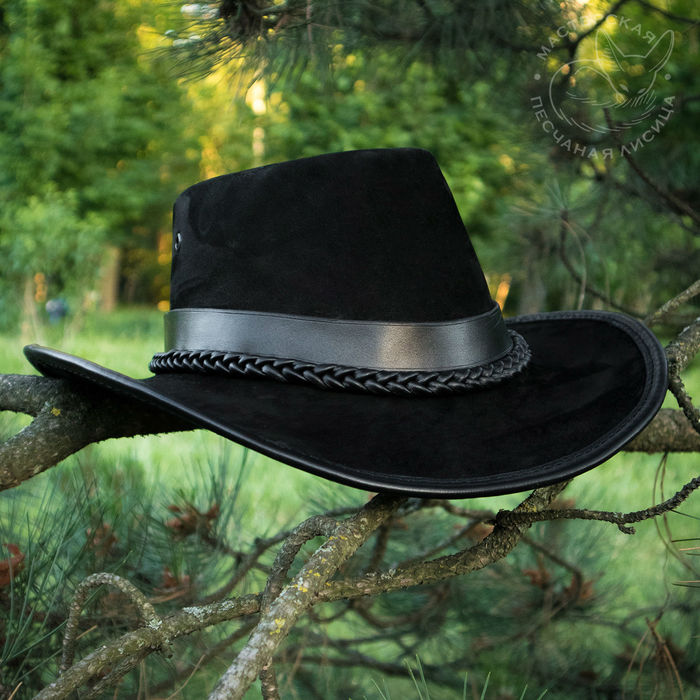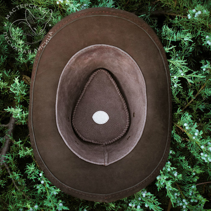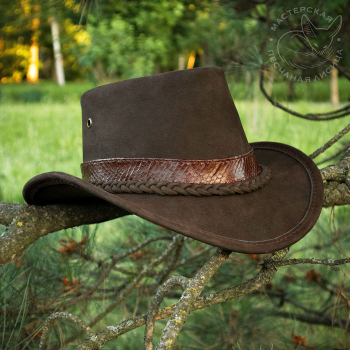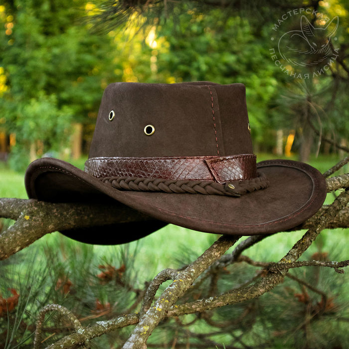 Городская шляпа из нубука, змеиная кожа винного цвета и серо-коричневый спилок внутри.