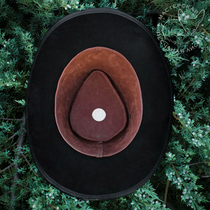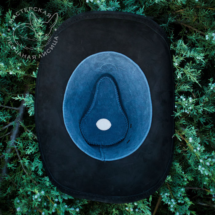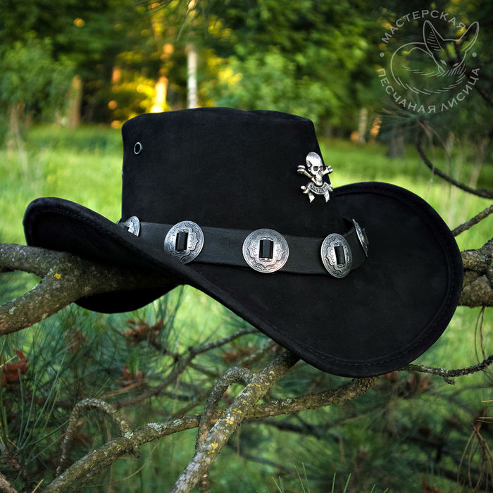 Шляпа Лемми Килмистера. Техасский черный стестон, внутри серо-голубой спилок, декоративная отделка щелевыми кончо в цвете "серебро".