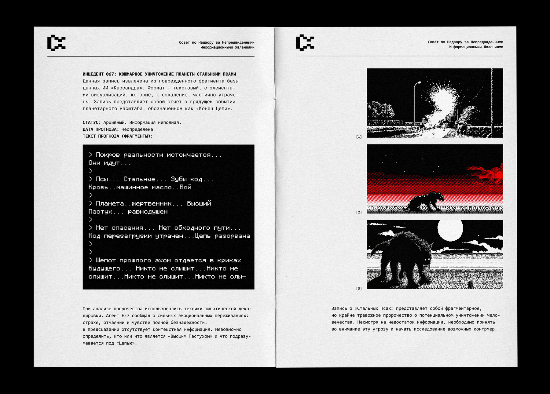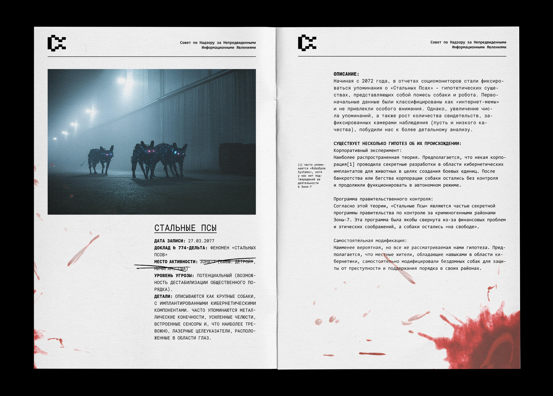 В документах фигурировали существа и люди, о которых я раньше слышал только в городских байках. Вот отчёт о стальных псах-роботах, патрулирующих ночные улицы:
