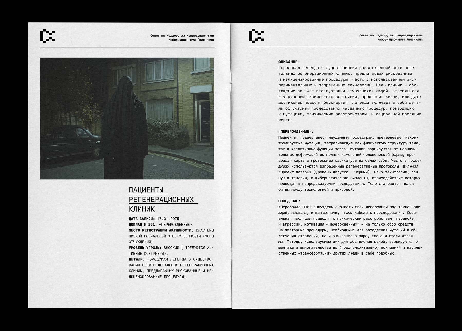 Особенно жутко было читать про подпольные регенерационные клиники. В отчётах описывались люди, которые возвращались оттуда другими — моложе, сильнее, но с пустыми глазами и странными отметинами на коже.