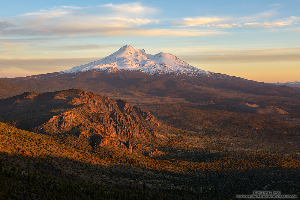 Пойдём по убывающей, это гора Шаста с высотой 4317 метров. Её особенностью можно назвать окружение. Дело в том, что вся система Каскадных гор состоит из стратовулканов, большинство их которых спящие. Этот, например, за время своей активности успел родить ещё 4 пика, которые теперь окружают эту гору. Самый древний из них не слишком отстаёт от своего "родителя" в высоте - 3758 метров.