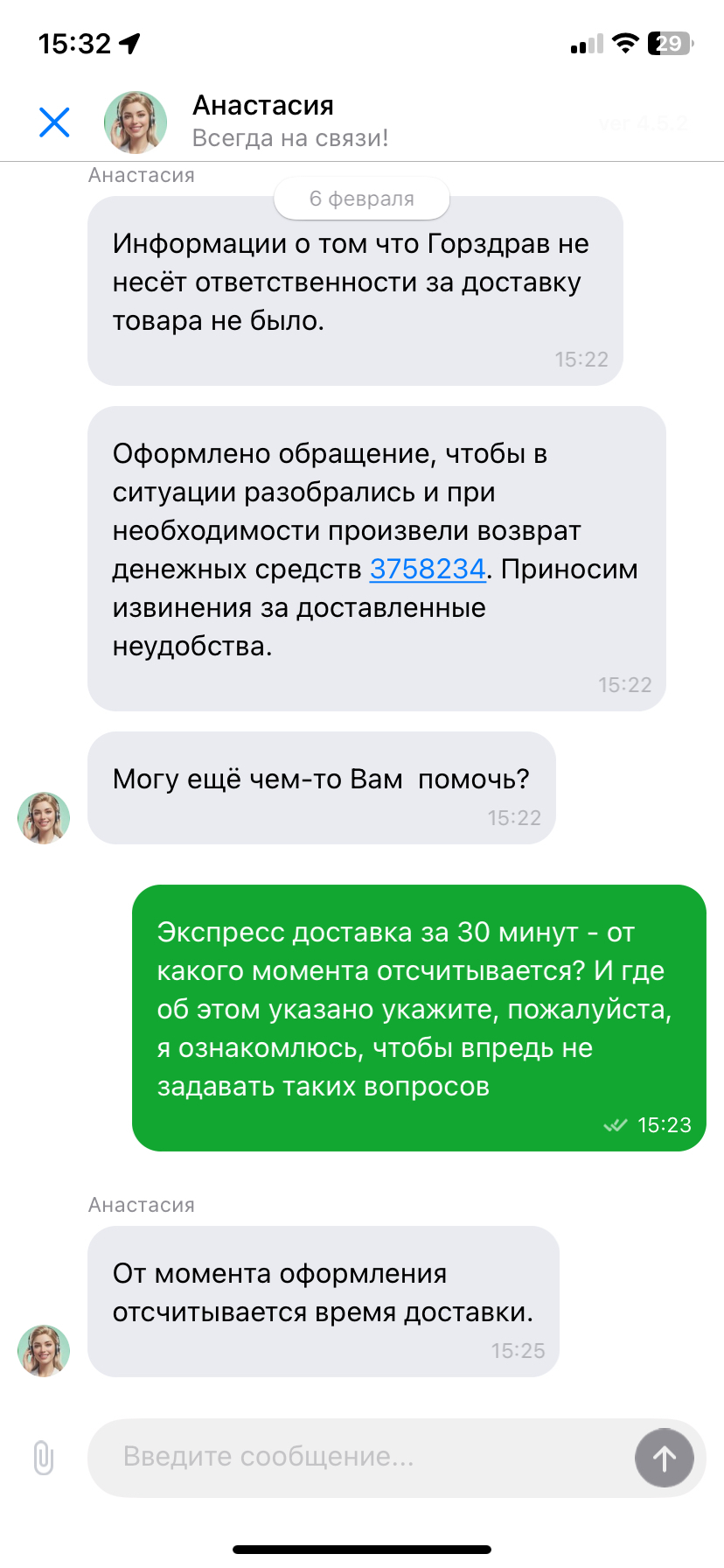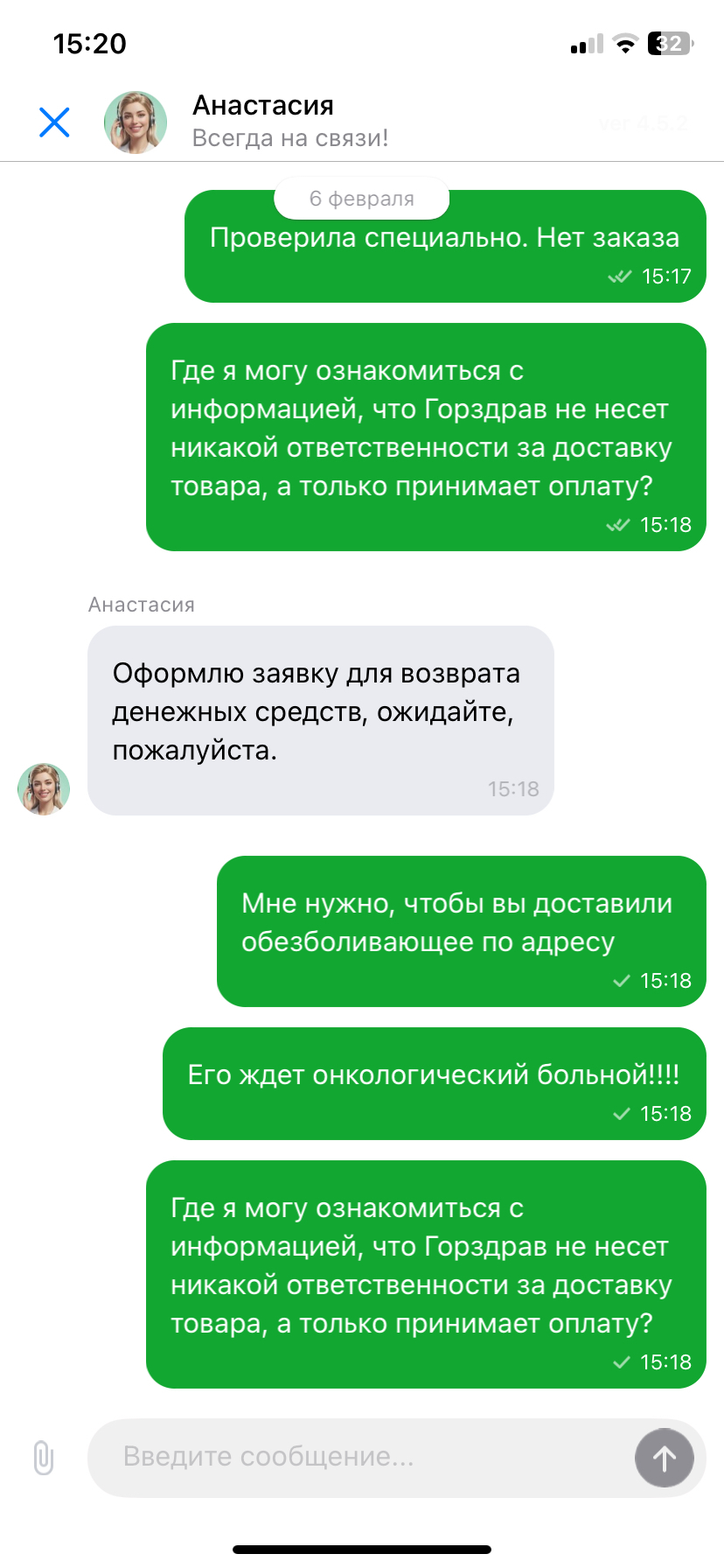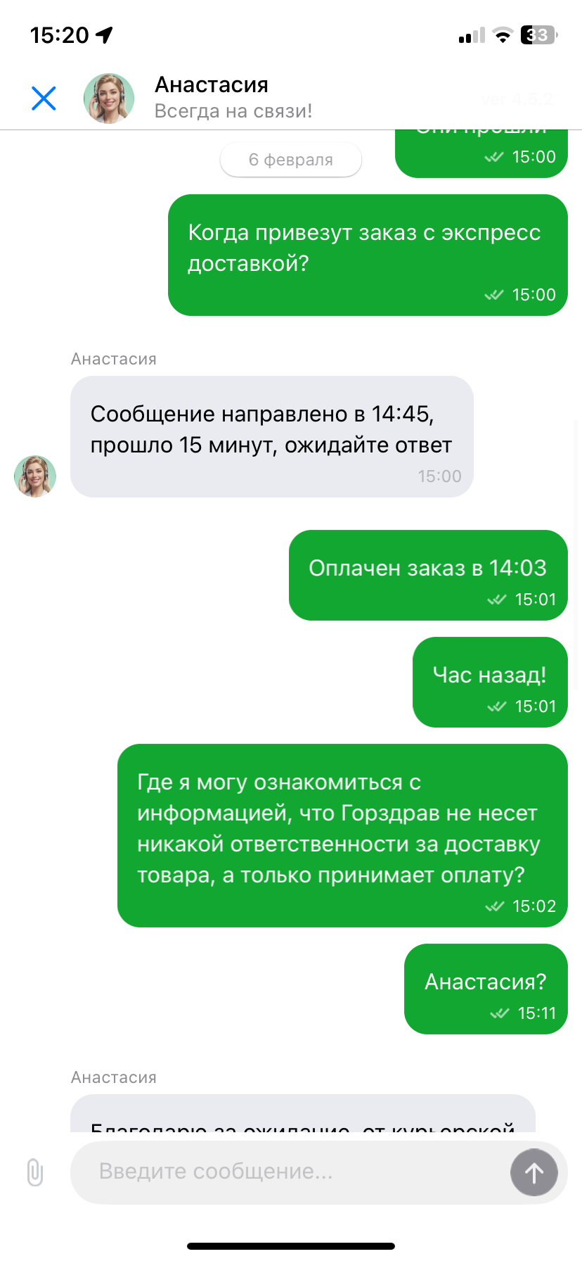 Сегодня оформила заказ обезболивающих с экспресс доставкой (это важно) для своей тяжело больной матери. Спустя час решила уточнить в чате Горздрав где же сам заказ. И вот такая чудесная переписка получилась.