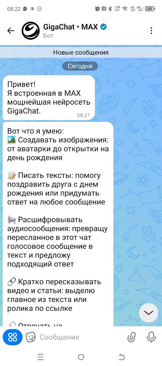 Государственный мессенджер Max со встроенной нейронкой от сбера Gigachat. Интерфейс не плох, больше похоже на вацап, чем на телегу. Жаль, лично мне телега удобнее, но вацап популярнее судя по сетевым метрикам.