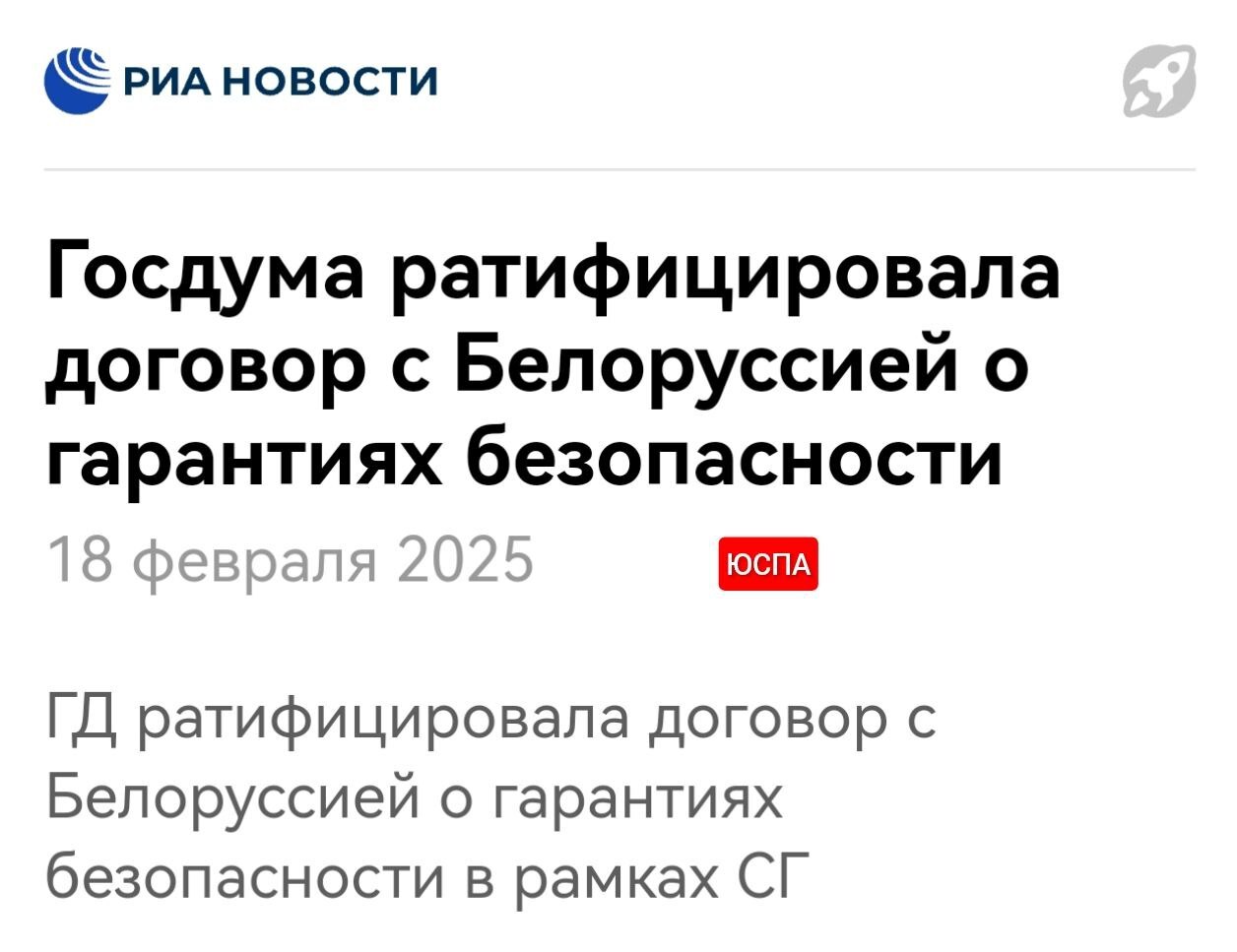 "Договор между Российской Федерацией и Республикой Беларусь о гарантиях безопасности в рамках Союзного госуларства.