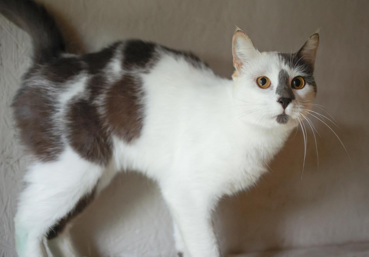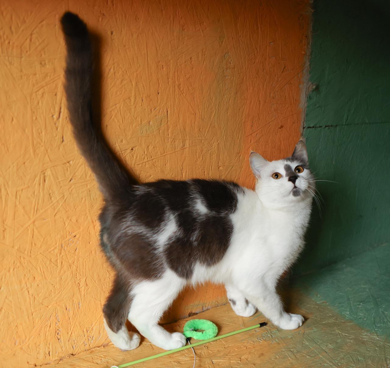 Он здоров, теперь привит, кастрирован, имеет ветпаспорт. Отлично владеет лотком с наполнителем и всеми когтеточками. Совершенно точно раньше был домашним. И его хозяева с ним много разговаривали.
