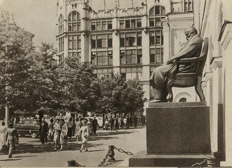 Фото 1962 г. Единственный в Москве "бронзовый домовладелец" на фоне ЦУМа.