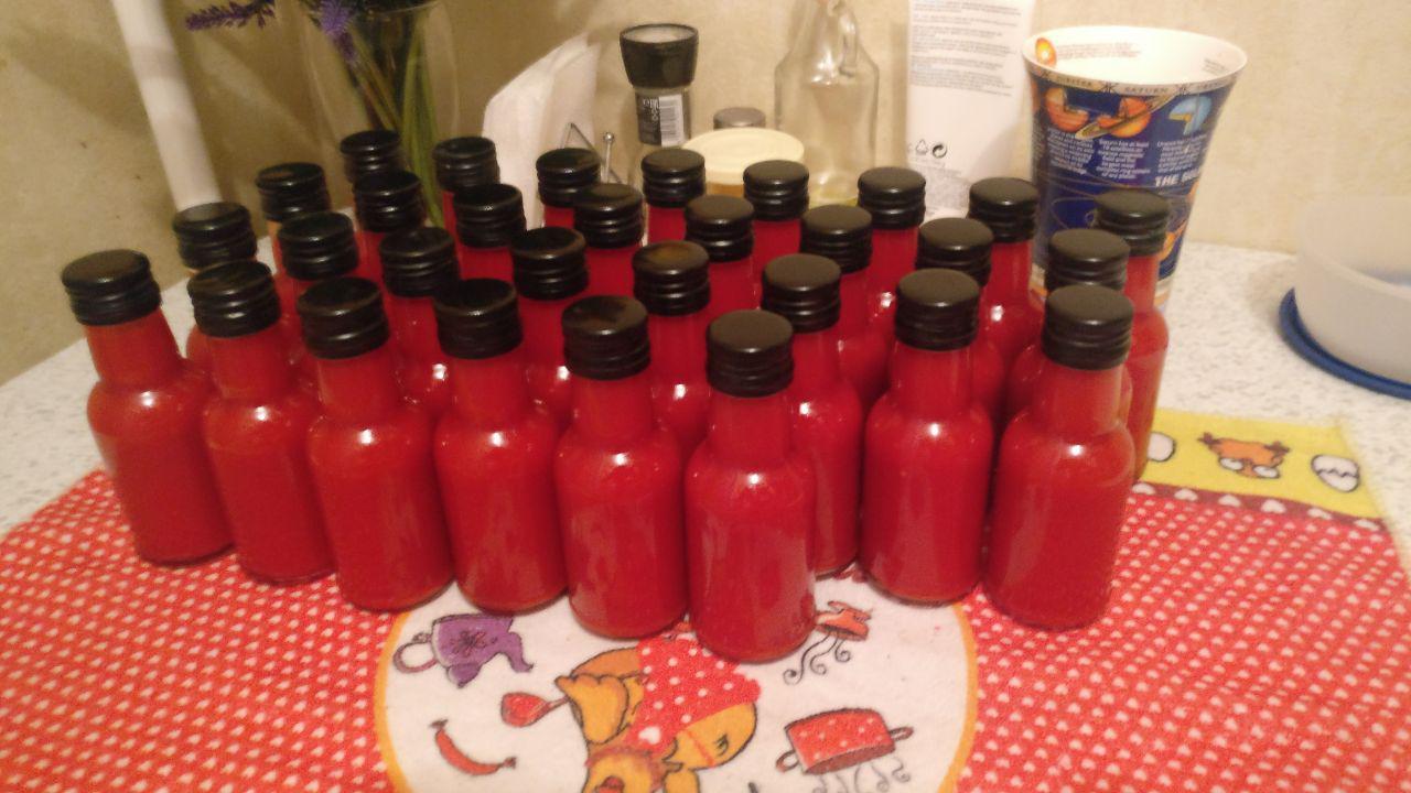 Цвет и текстура очень благородные, аромат божественный, а вкус... эти 5 секунд не дадут вам понять его полностью потому, что потом приходит просто неебическая острота, которая составит вам компанию надолго. Ну а теперь разливаем это дело по стерилизованным бутылкам и пиздуем мыть гору посуды, к которой этот чудесный соус уже успел присохнуть!