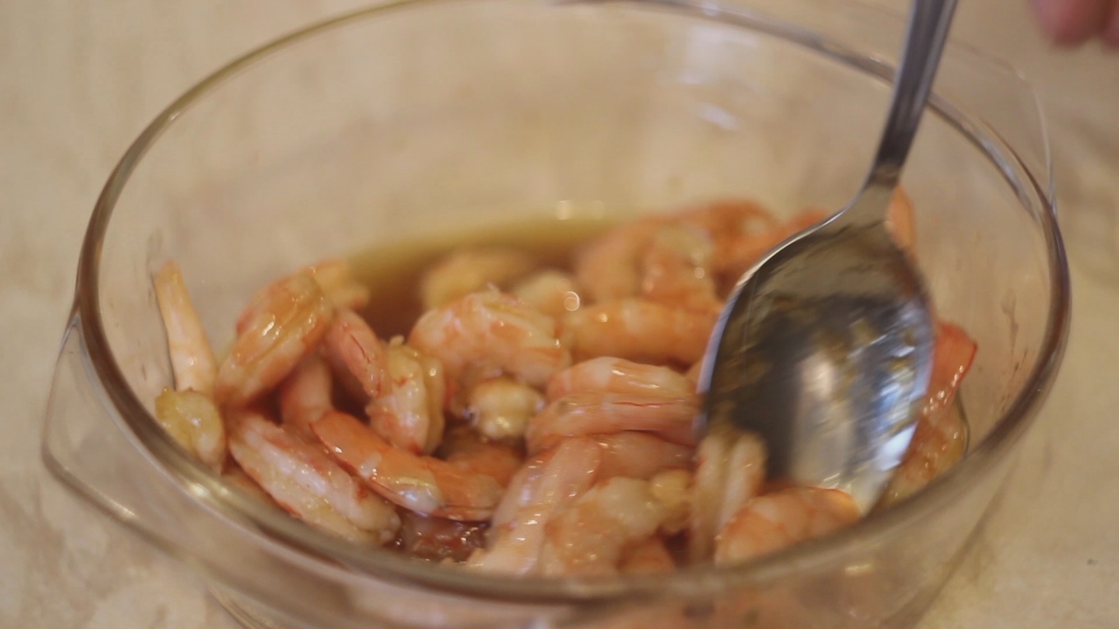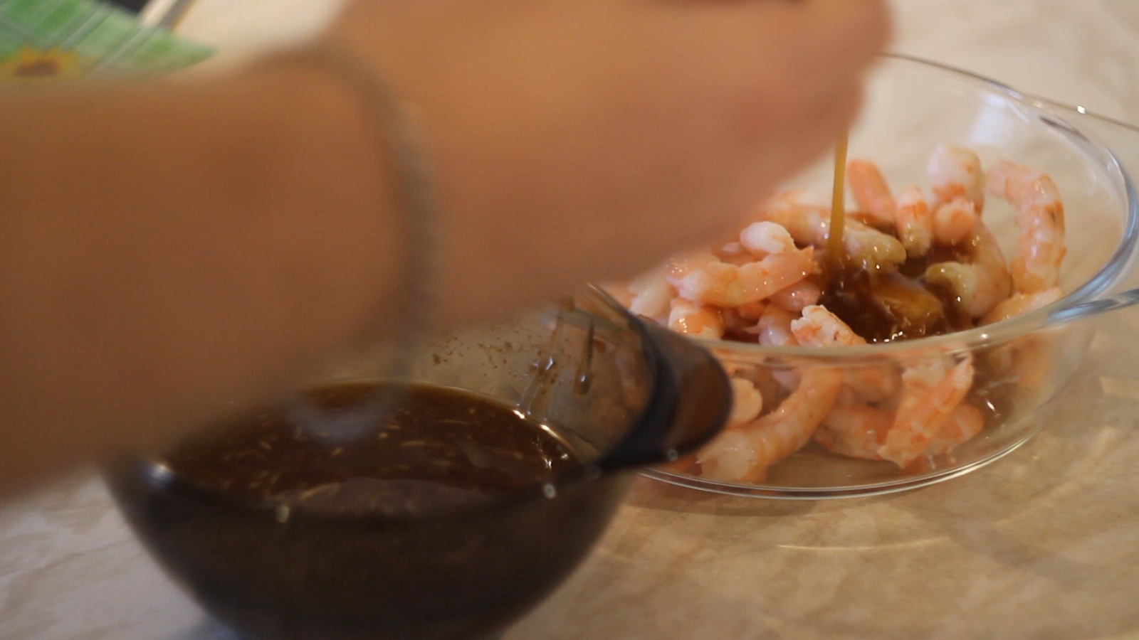 10. После того как выложили первую партию креветок, польём оставшимся соусом наши креветки.