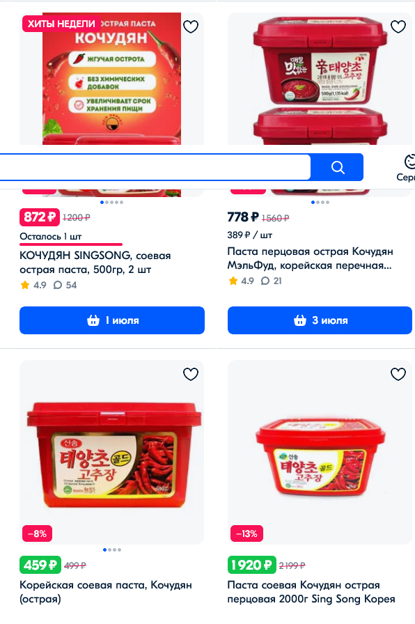 - Паста тяй (тведжан, продают корейцы на любом рынке)