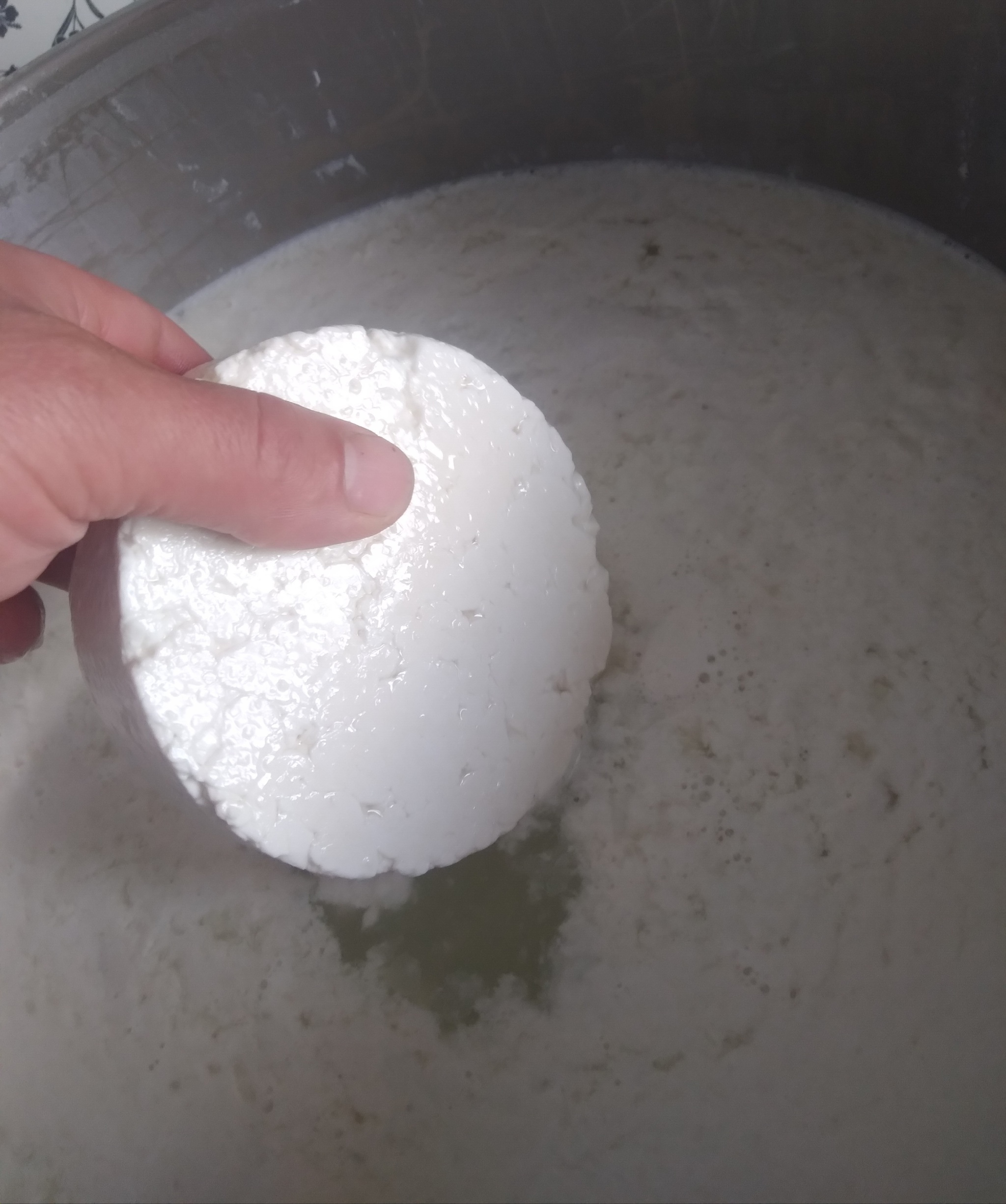 Когда головки всплывут, вылавливаем их и раскладываем обратно по формам,что бы с них стекла лишняя сыворотка.После этого сыр можно посолить.Аккуратно натираем солью со всех сторон.