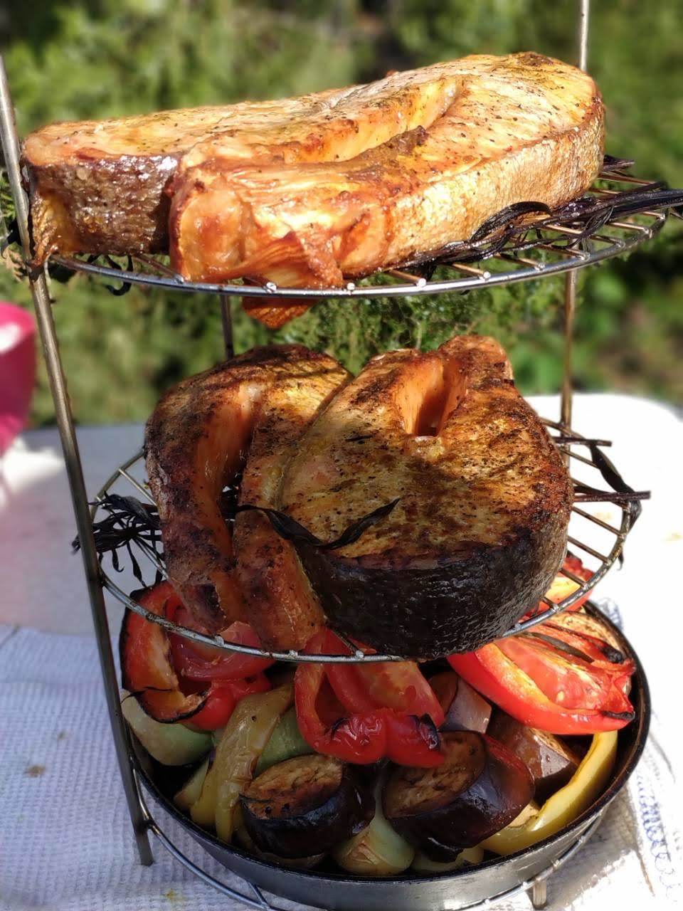 Пока тандыр "доходил" мы оставили закаляться там решетку. Она из нержавейки, поэтому весь уход за ней сводится к тому, чтобы сжечь остатки прошлых блюд во время топки тандыра, мыть в целом и не нужно.