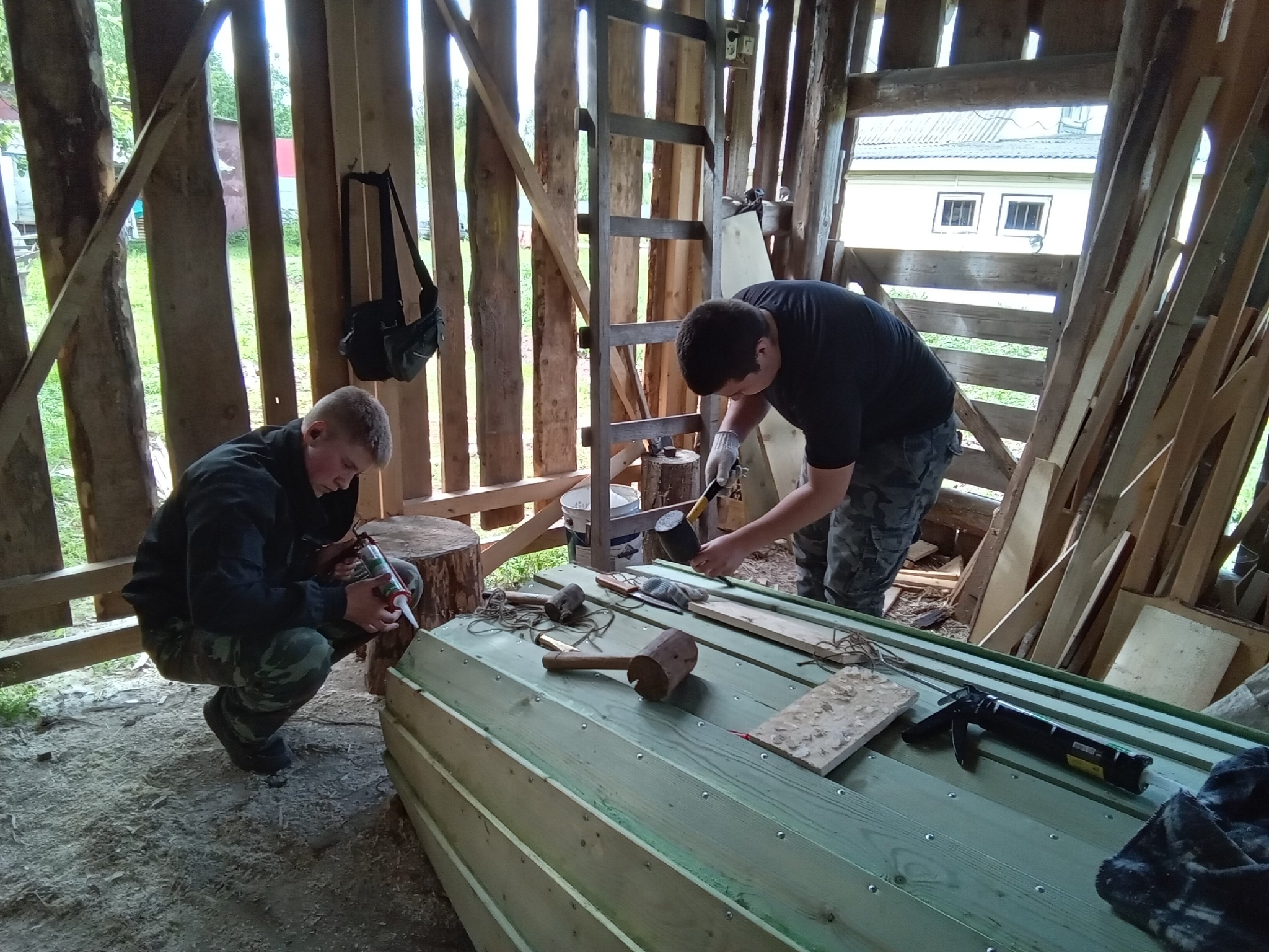 Снова поучаствовали с пацанами в этом году в конкурсе лодочного мастерства в селе Устье Вологодской области. Готовились целый месяц под руководством опытного наставника, славного мастера лодочника. В прошлый год заняли третье место, парни посмотрели, какие лодки, как сделаны, и в этом году сказали - "Да что мы, первое не возьмем???", и начали трудиться)