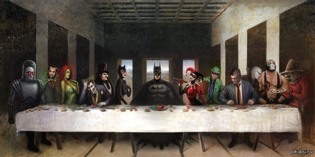 4 KinderHuinder Готэмская вечеря 10 лет назад По мотивам Леонардо Довинченного DC Comics Пародия Фреска Бэтмен
