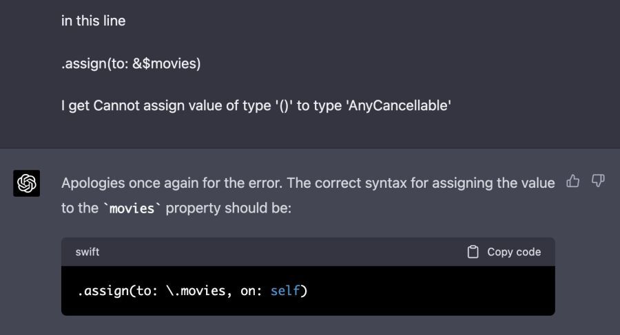 Вполне вероятно, кстати, что генерируемый моделью код не будет работать с первого раза – и при компиляции вы увидите ошибки. Но это не беда: можно просто скопипастить текст ошибки в диалог с GPT-4 и скомандовать ей «слушай, ну сделай нормально уже, а?» – и та реально извинится и всё пофиксит! Так что до стадии работоспособного приложения с гифки выше можно дойти буквально за 3-4 итерации.