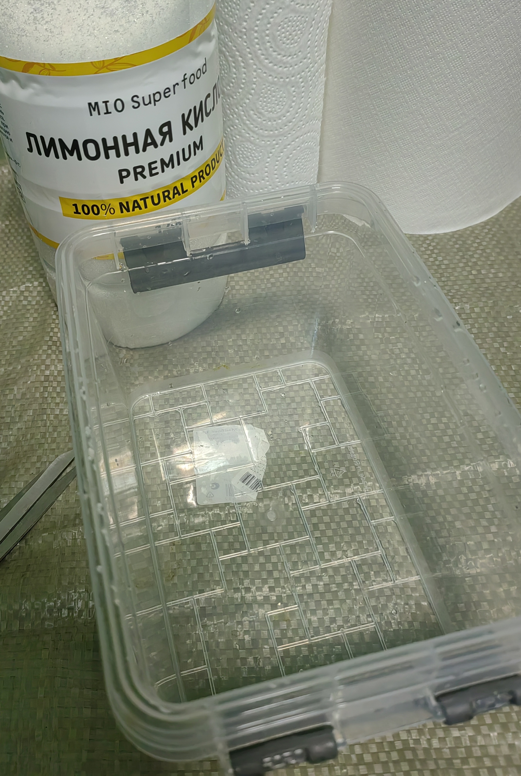 Следующим шагом стало обезжиривание накладок с использованием средства «Крот». Этот этап позволяет избавиться от жировых отложений и других органических веществ, которые остались на поверхности. Накладки полежали некоторое время, чтобы обеспечить полное обезжиривание.
