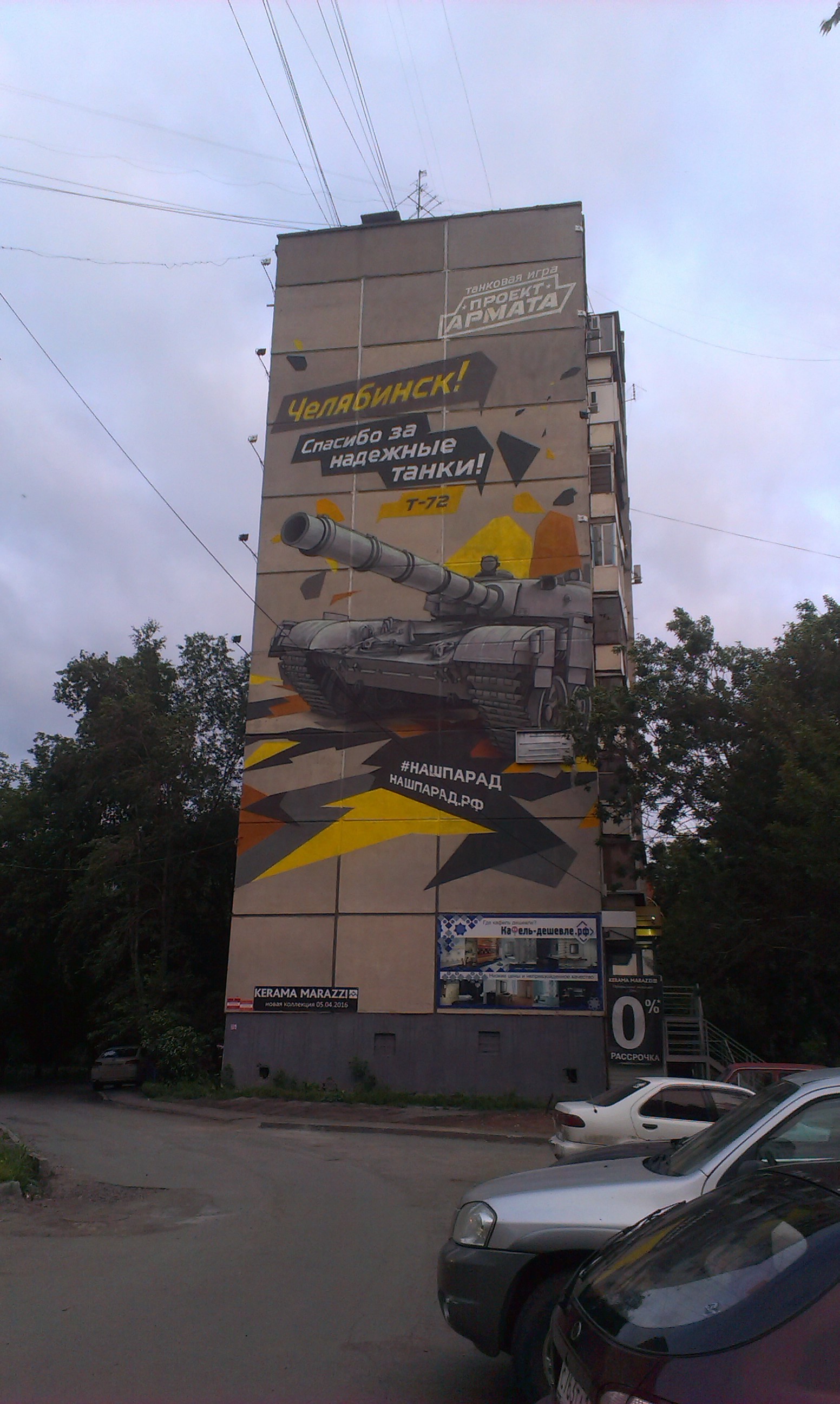 33 dimaschel Граффити в Челябинске 9 лет назад Киньте в меня баяном если кто-то уже показывал тут это здание. [моё] Т-72 Челябинск Граффити Т-14 Армата Танкоград Реклама