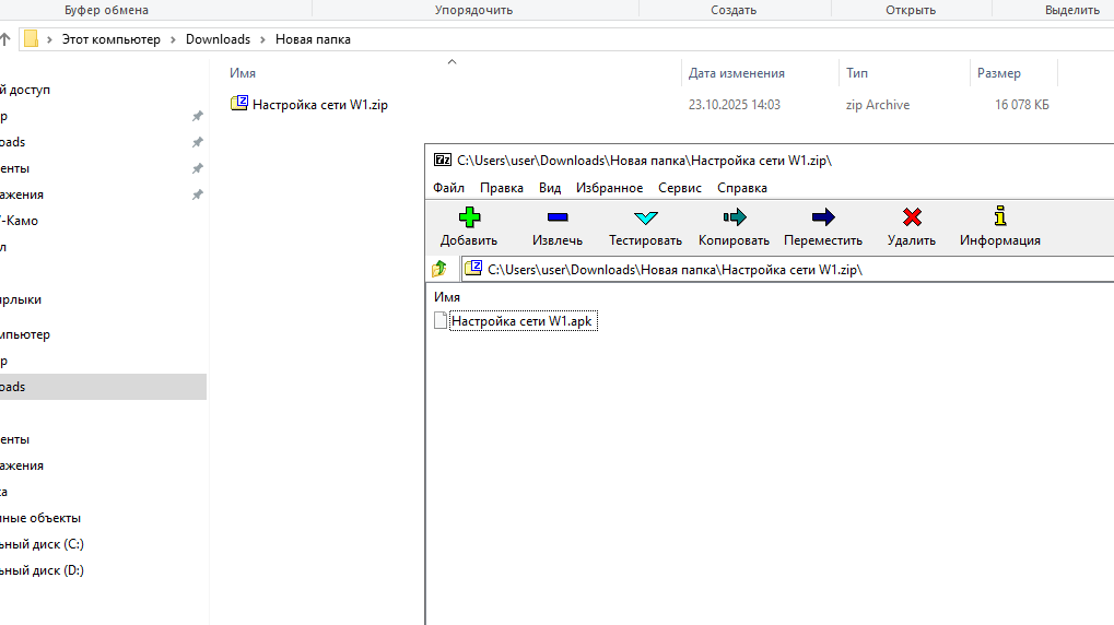 файл zip внутри файл "Настройка сети W1.apk". а я скачал его не на телефоне как они настойчиво поторапливали скачать и запустить а в браузере компа. )))