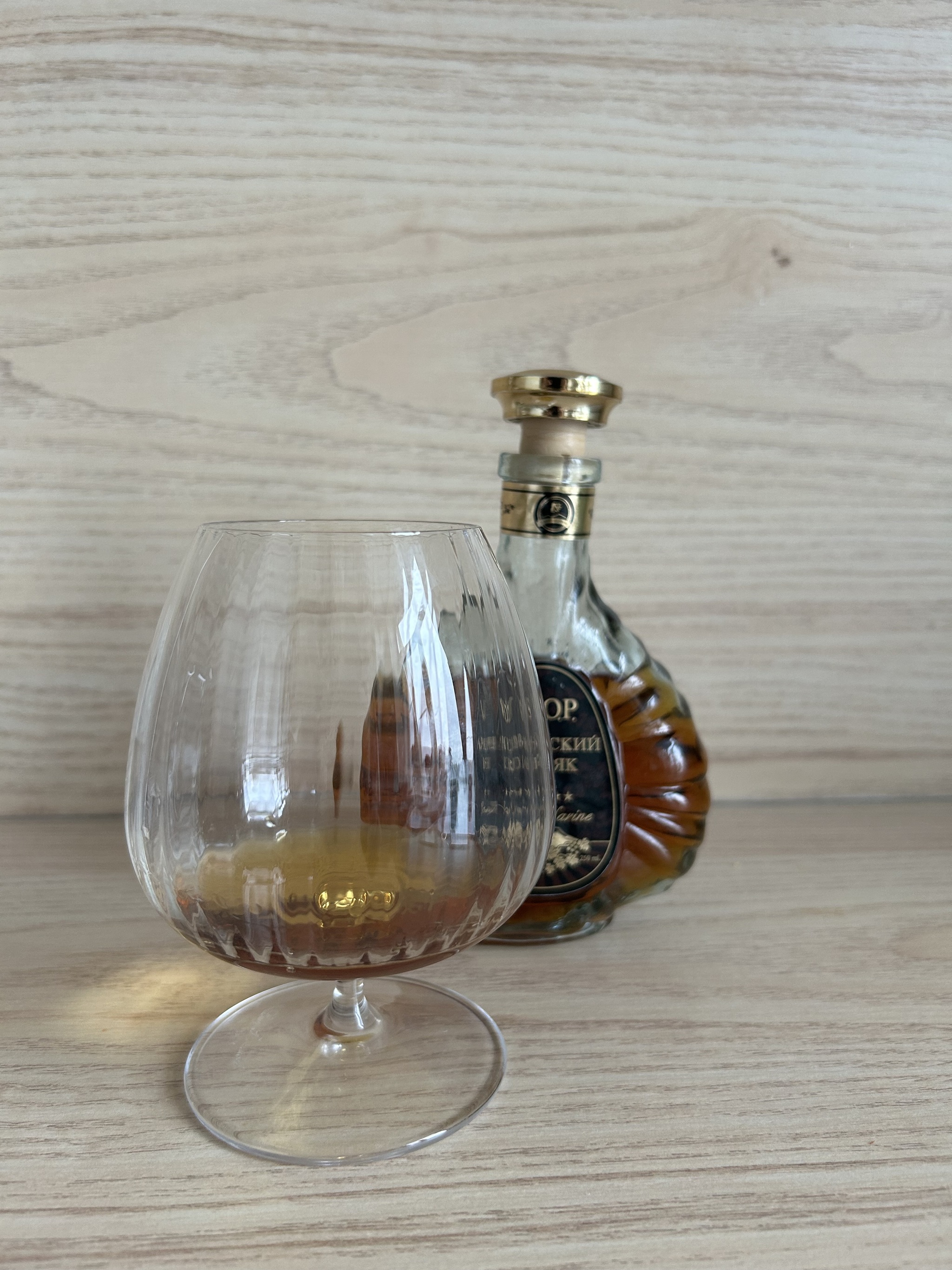 Цвет. Стандартно-колерный без блеска. Вязкость никакая, на стенках мытого бокала не держится и бодренько скатывается вниз – спирт, а не коньяк.