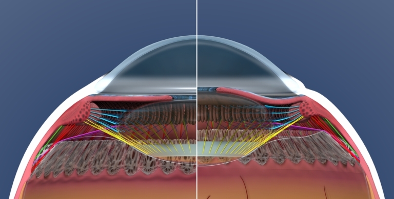 Оптическая система глаза, если очень кратко, состоит из двух линз: регулируемой – хрусталик и нерегулируемой – роговица. (Да, да, я знаю про стекловидное тело, переднюю камеру и тому подобное, но нам это сейчас не нужно). Роговица – прозрачная часть глаза, собирает свет и направляет его внутрь глаза. Содержит множество нервных окончаний, поэтому именно ей мы ощущаем соринку в глазу. Хрусталик же, находится внутри глаза и закреплён связками к цилиарной мышце. Именно он отвечает за то, чтобы мы могли чётко видеть на разных расстояниях.