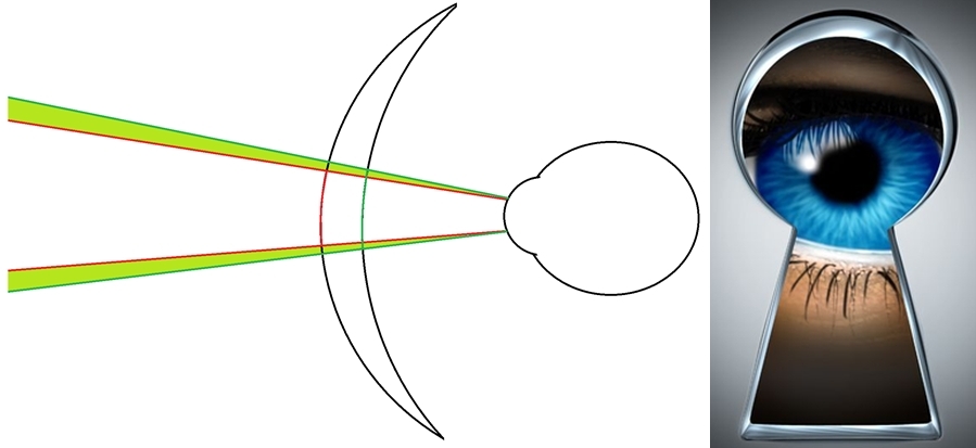 3. Эффект замочной скважины. Чем ближе к глазу зоны линзы, тем шире они кажутся.