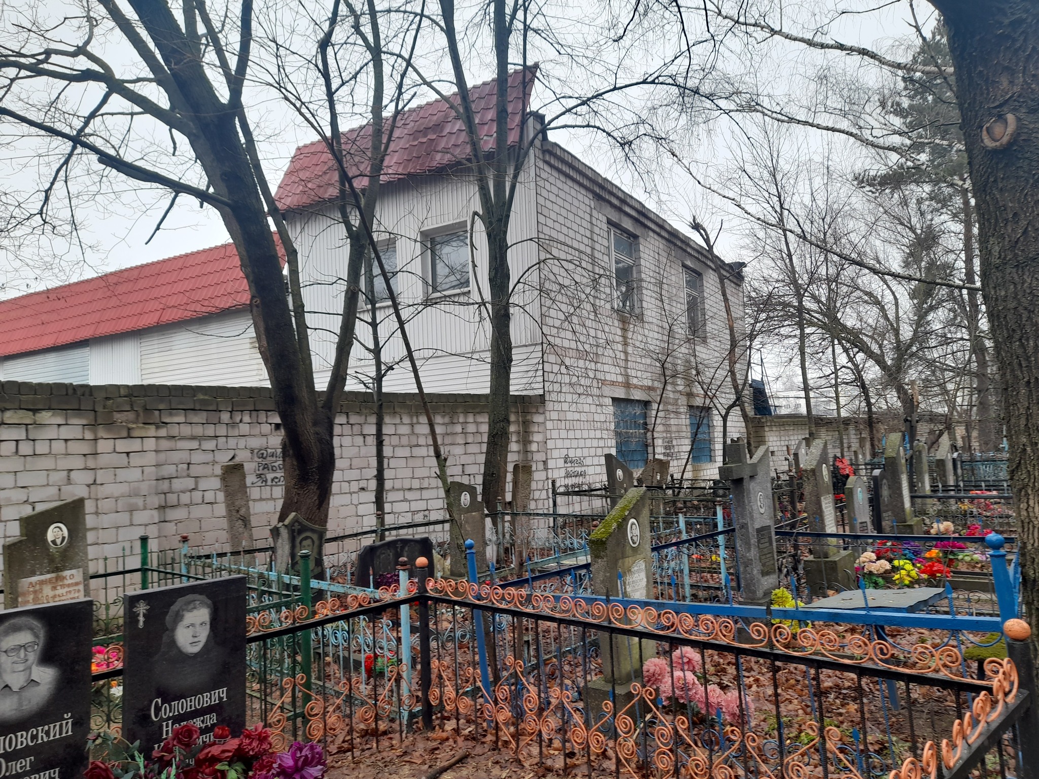 Третья часть этого рассказа пока немного застопорилась и будет выложена попозже. Сегодня же мы посмотрим на реальное кладбище в Бобруйске, где побывали герои во второй части. Тут мы с вами видим стену, которая отделяет очень старое кладбище от бывшей автобазы и даже видим как одно из административных зданий окнами выходила прямо туда. Если бы мы прошлись чуть далее, то увидели бы могилу самого известного бобруйского авторитета, но это потом. Пока нас интересует могила бабы Насти, которую обнаружили во второй части "Границы грома". А она именно там, где красная стена