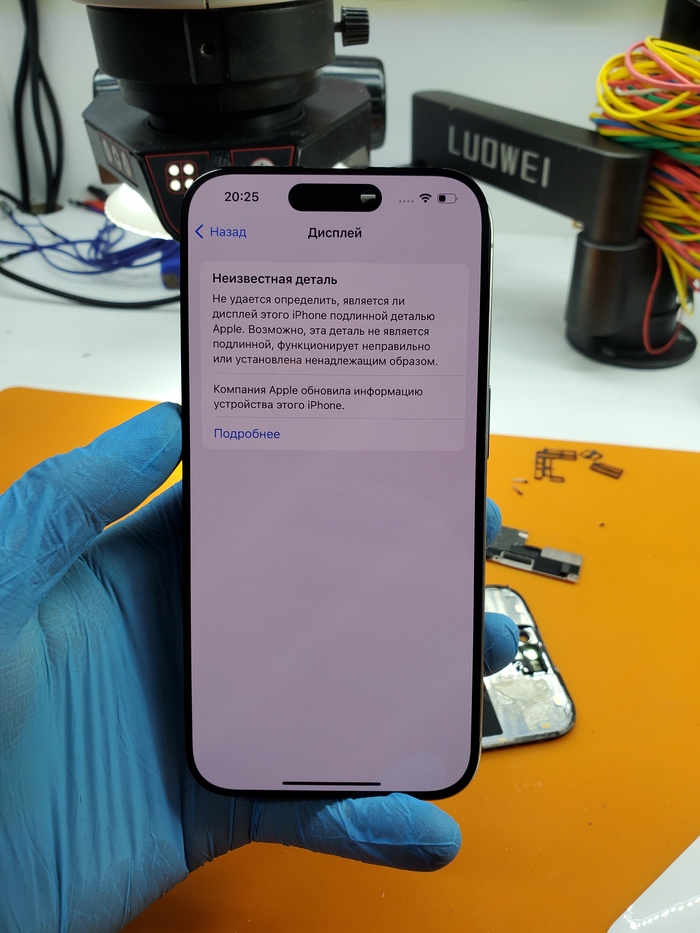 Как многие не знают, эпл привязала дисплей к процессору и даже при замене на такой же 100% оригинальный в настройках будет бесить это: