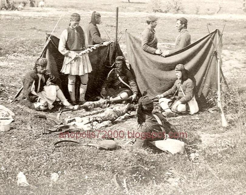 Греческие эвзоны (стрелки) ищут утешения после поражения в паре свежеизжаренных барашков: