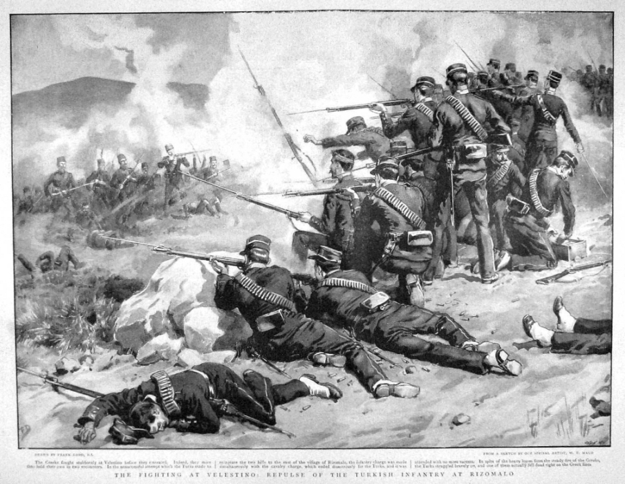 Мужественная оборона отряда греческих войск и добровольцев под командой полковника Смоленица (австро-чешского аристократа на греческой службе) у местечка Велестино с 15 по 25 апреля стала для греков самой крупной удачей в этой скоротечной войне.