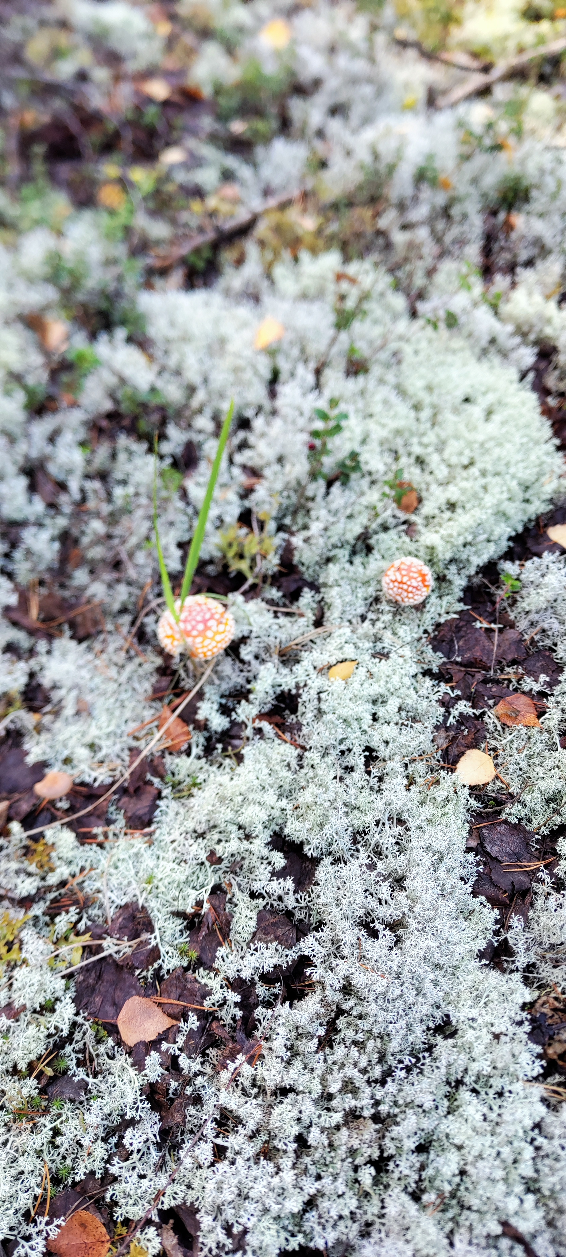 Как-то удалось побывать в волшебных лесах пермского края (под Березниками), где растёт белый мох, а под ним - белые грибы.