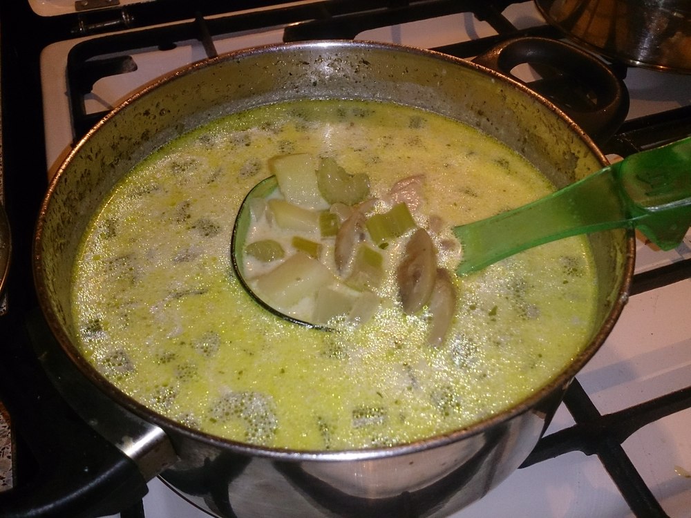 В принципе это не что иное, как обычный грибной суп-пюре ,с единственным отличием ,что этот в итоге, не перебивается блендером. В этой похлебке присутствуют сливки и мне думается ,они здесь как раз к месту. Тем более что у домовитых и весьма хозяйственных хоббитов определенно могли быть коровы, раз был сыр.