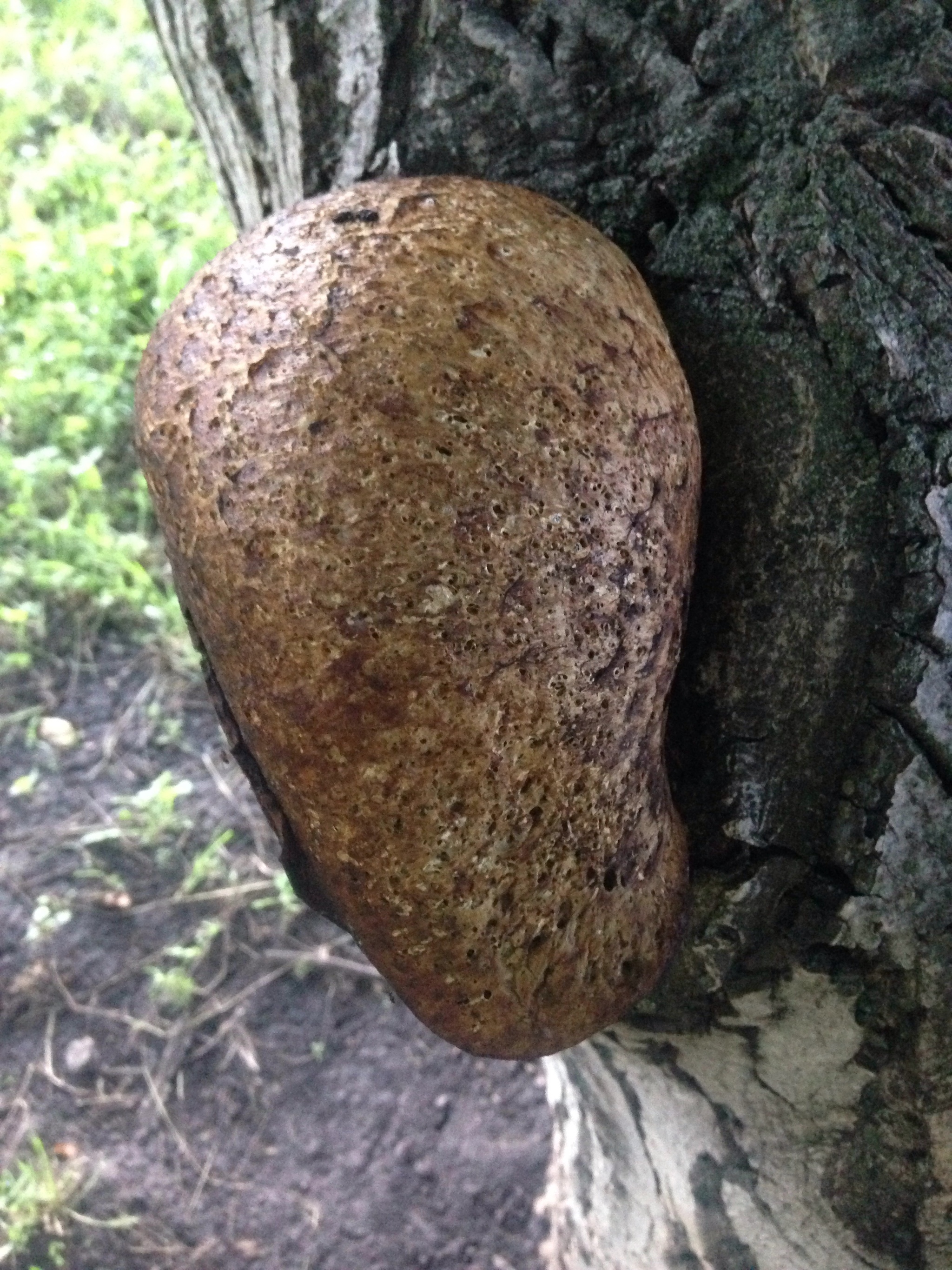 Приехал недавно как бабуле, и на моей детской обзорной мачте (орех) выросло вот это нечто (гриб). Расскажите что за гриб, и надо ли как-то подлечить дерево что ли. Спасибо.