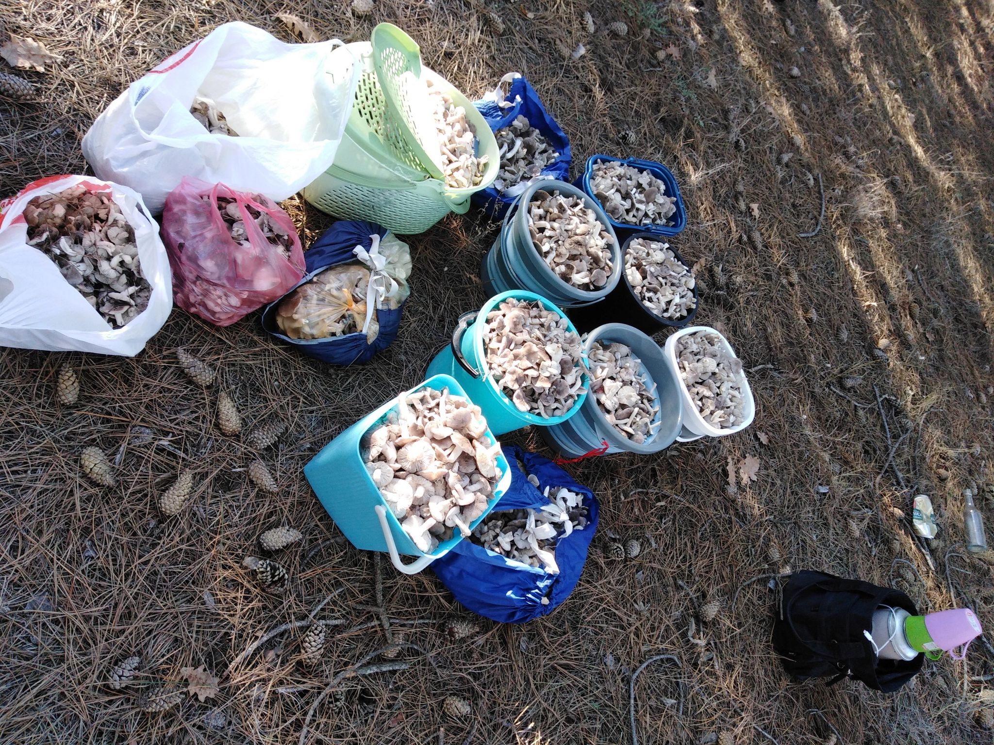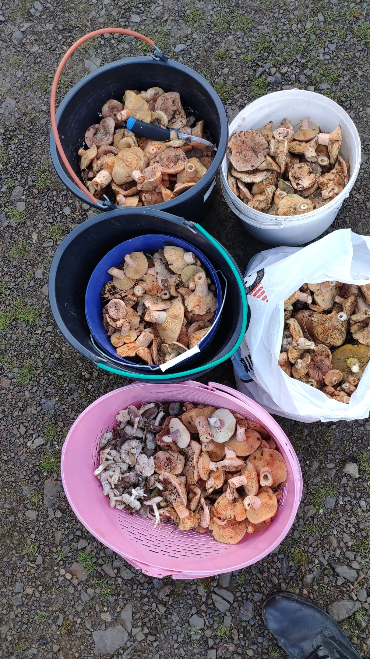 Были дожди, наросло много грибов, даже рыжики, которые вообще тепло только любят, и тех много.
