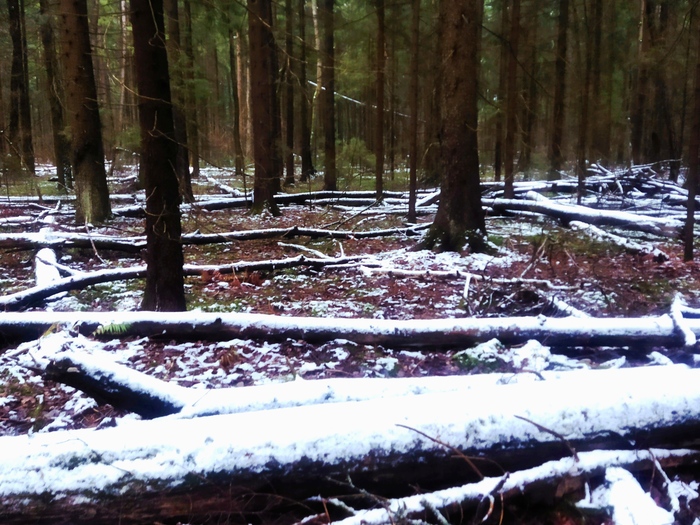 Вот такая обстановка сейчас в лесу на юге Подмосковья. Думаю, следующая вылазка по грибы будет уже на лыжах).