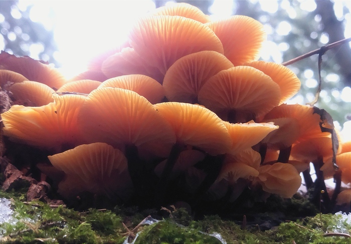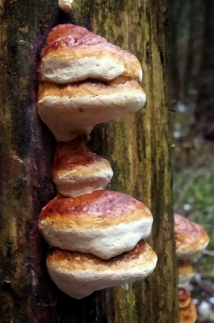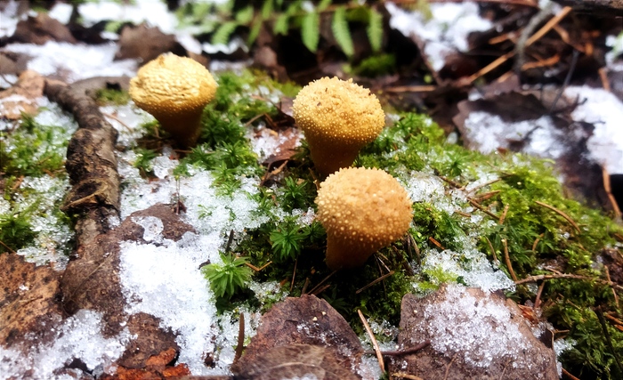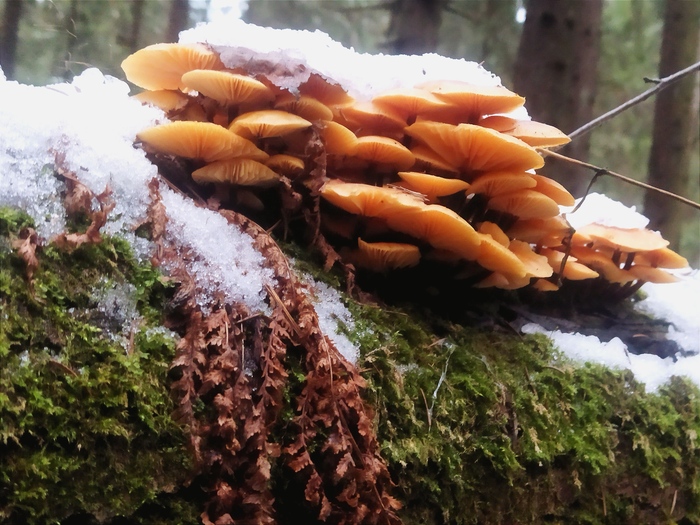 В городе потеплело, но в лесу снег так и не растаял. Лёгкий морозец. Зеленеют мхи. На деревьях много красивых трутовиков.