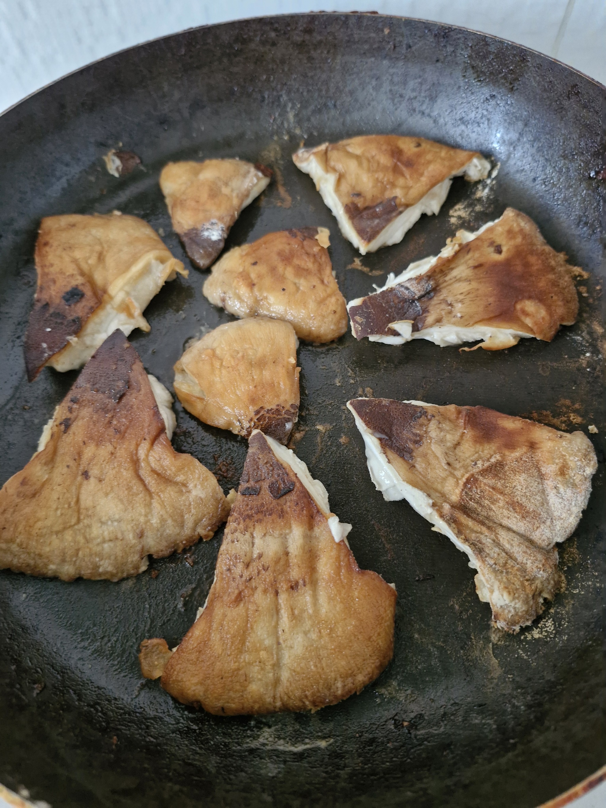Обвалять в муке с каждой стороны. Жарить на среднем огне или чуть выше среднего по 2-3 минуты с каждой стороны, до золотистого цвета. Масла вбирают много.