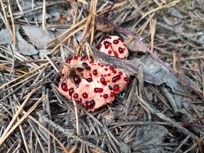 Автору спасибо. Поискал в вп и узнал что : Hydnellum peckii может биоаккумулировать цезий. А в целом "эктомикоризные грибы" участвуют в удержании и циклировании цезия-137. Интересно :)