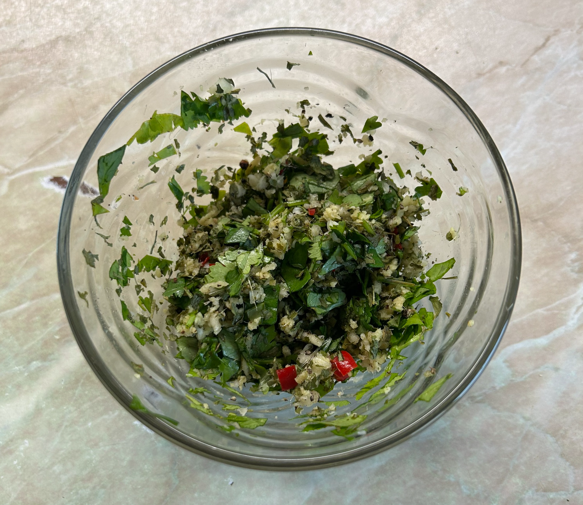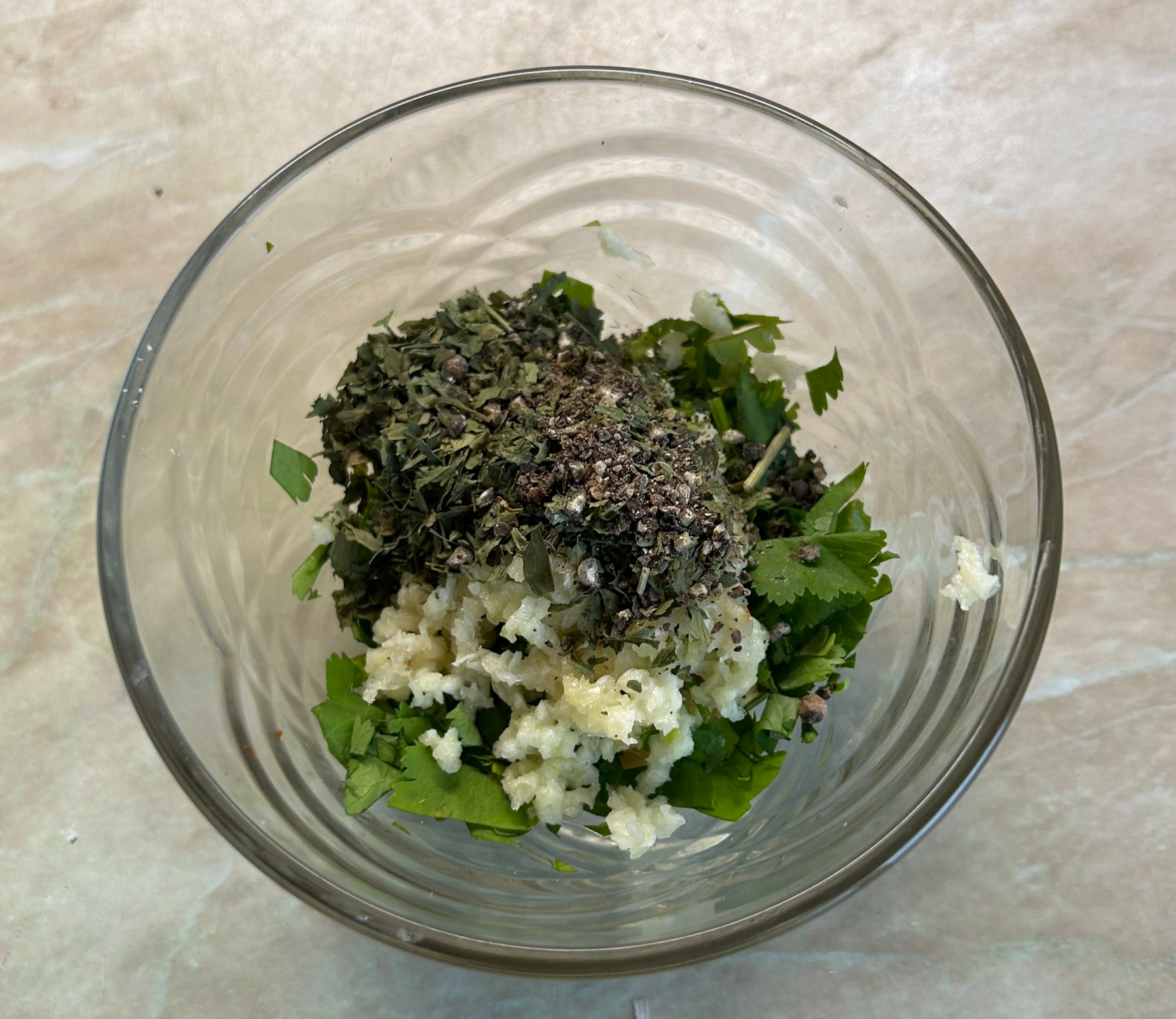 Перец и сушенные травки просто закидываем к остальному